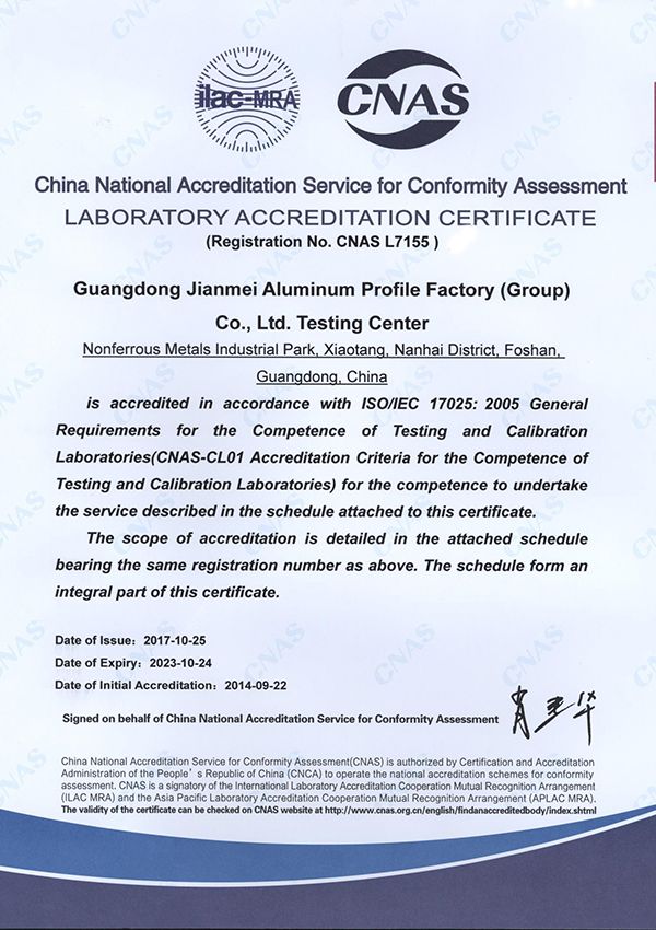 En mayo de 2021, obtuvimos la certificación del Sistema de Gestión Ambiental ISO14001: 2015. La producción de perfiles de aleación de aluminio cumple con los requisitos de ISO14001: 2015.